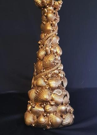 Лето уходит, но привезенные ракушки с моря всегда нам о нем напоминают. Эта ваза сделана вручную с использованием морских ракушек, бусин, различной фурнитуры, покрыта золотой краской и лаком. Высота 25 см, ширина 12 см. На 1 цветок