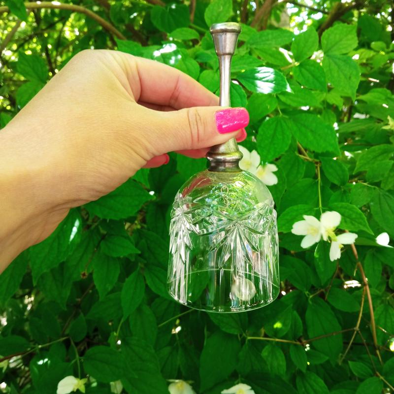 Хрустальный, винтажный колокольчик с посеребряной ручкой в идеальном состоянии.англия