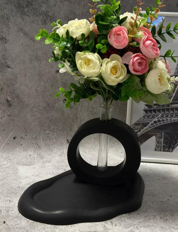 Выполнен из высококачественного гипса. Ваза с колбой 11 см, подставка длина 24 см.