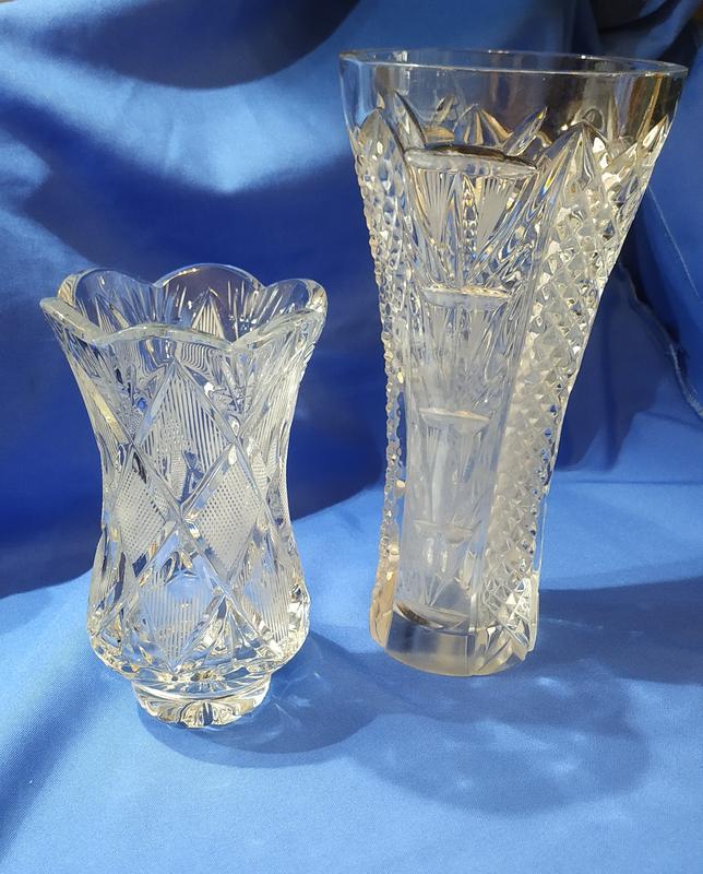 вазы хрустальные, эпохи срср, в очень красивом состоянии, без нюансов, сколов, реставрации. 1. высота 25см, диаметр верхней части 13см, нижней 9см. цена 350 грн. 2. высота 18см, диаметр верхней части 10см, диаметр нижней части 6мм. цена 300грн.