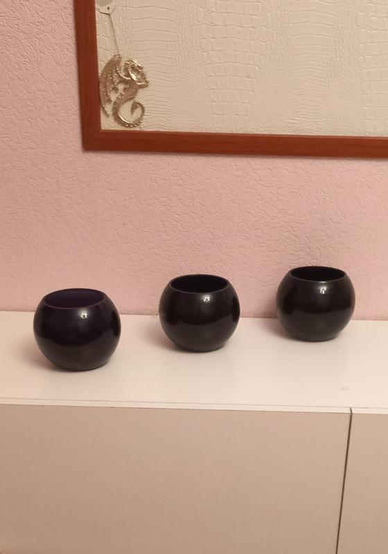 стекло черный цвет 3 шт скоба отсутствует Вазы без нюансов кроме одной в ней плохо украшены дно производителем. в магазине осталось только 3 шт и пришлось брать и такую. И не пожалела потому что этого нюанса не видно ( последнее фото) продаю потому что изменила интерьер