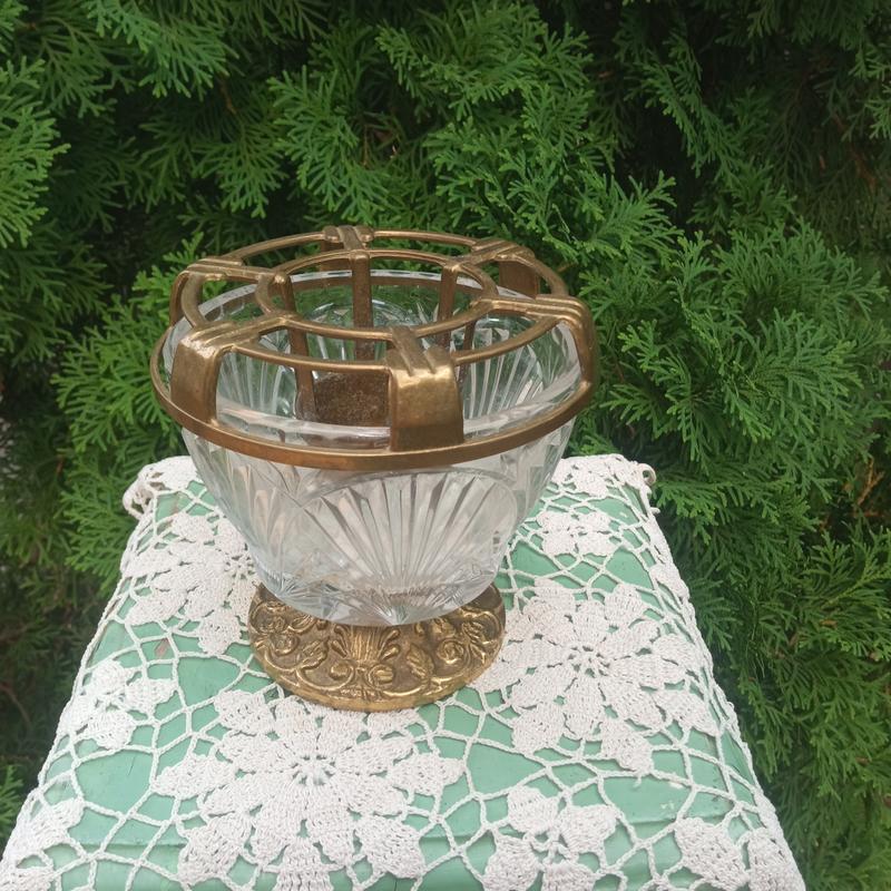 Ваза , роузбол хрустальный с бронзой в идеальном состоянии