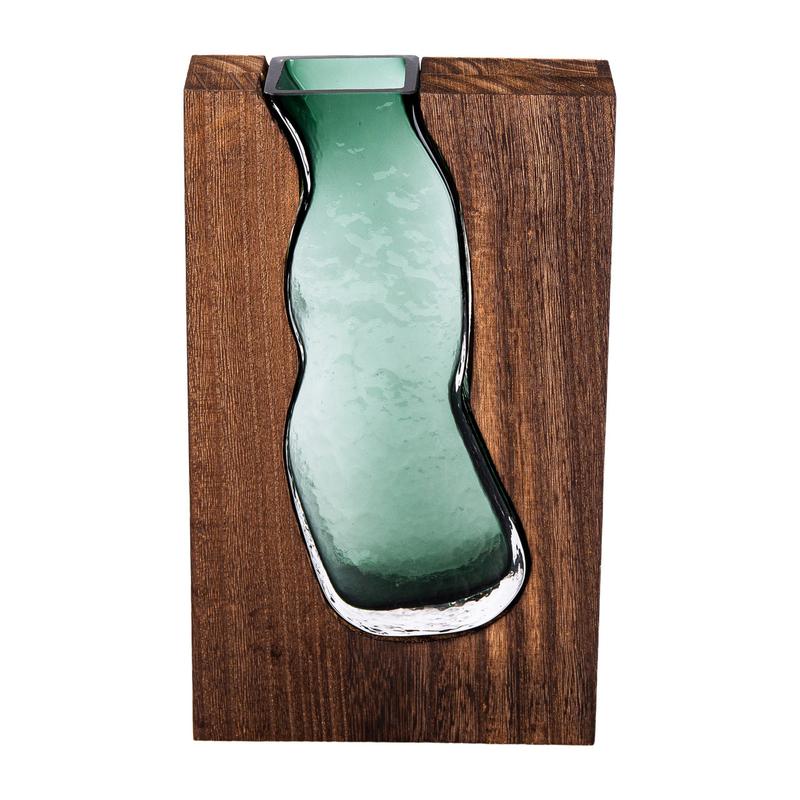 Ваза стеклянная с деревянной рамой, прямоугольная 23,5 см. shop
