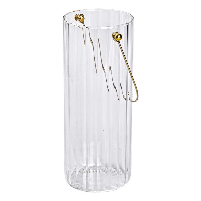 Декоративная стеклянная ваза для цветов с ручкой 29,5 см