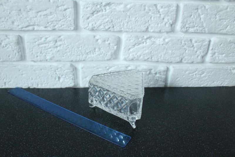 Вінтажна кришталева трикутна скринька зі скляною ніжкою. Брелок із візерунком у вигляді стільників. Добротна. Стан ідеальний, без сколів, тріщин Ціна - 530 грн