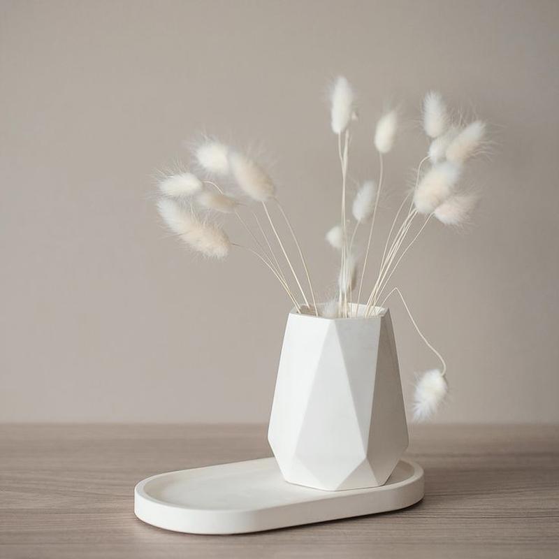 Ваза декоративна из гипса . Настоящая находка для перфекциониста и минималиста. Украсит ваш интерьер, идеально подходит для сухоцветов. Размеры : высота 10 см диаметр 7 см , горлышко 6.5 см Цвет : белый Овальная подставка из гипса. Украсит ваш интерьер, послужит для украшений , косметики, свечей, аксессуаров. Размеры : длинна 17.5 см ширина 9 см Цвет: белый Цвет изделия может немного отличаться от фото