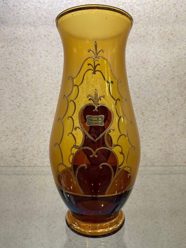 ❗️РОЗПРОДАЖ ❗️ Ваза Торгової Марки BOHEMIA EGERMAN ⭐️ Чудова якість . ⭐️ Стильний дизайн. ⭐️ Криштальне скло ⚜️Колір -Янтарний ⭐️ Висота 29 см ⭐️ Діаметр 13 см. ⭐️ Стійка та надійна форма ⚜️ Деколь виконаний вручну ❗️ 👑 Краіна Виробник Чехія 🇨🇿 Залишок 1 шт 141/34