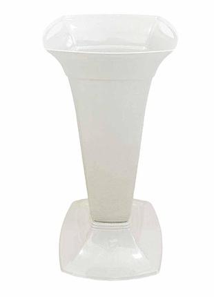 Высокая, пластиковая, белая, напольная ваза для цветов с перламутровым отливом. Ножка снимается. Высота 39 см