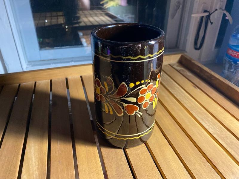 Диаметр- 8,5 см., высота - 15 см., окружность в широком месте - 28 см