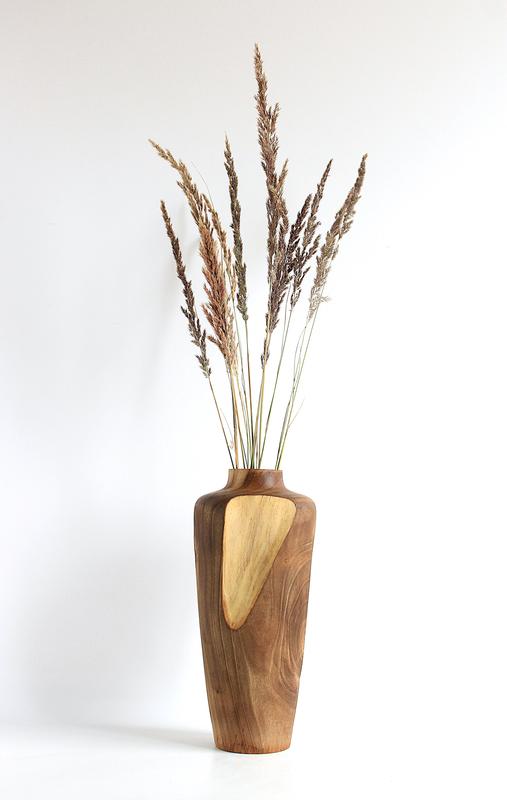 Ваза из ореха для сухоцветия диаметр 15 см, высота 33 см (1900) передзамка