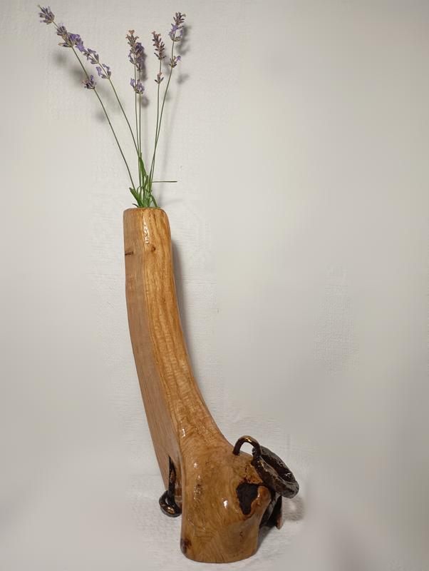 Декор интерьера - ваза для сухоцвета из древесины дуба. Добавлены элементы из древнего металла, чья коррозия гармонично “дружит” с возрастными особенностями древесины. Высота 31см. Изделие в едином экземпляре.