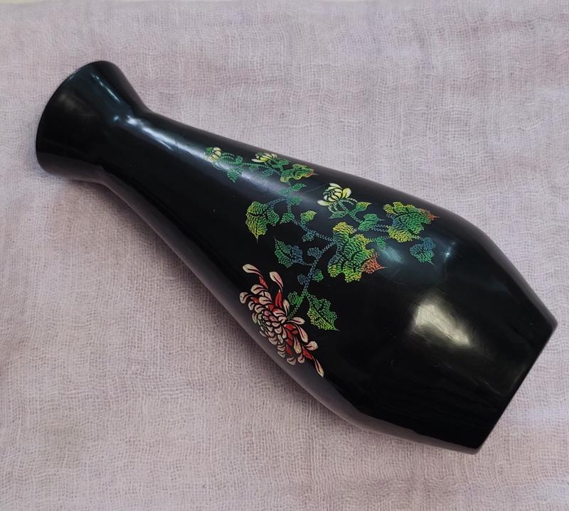 Ваза из дерева из Вьетнама, высота 20 см e скол лака и царапина внутри горлишка