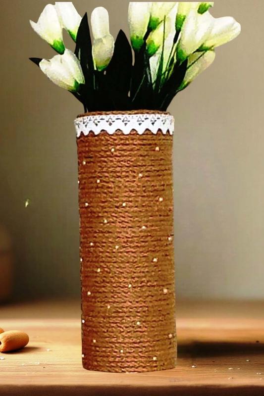 Ваза ручной работы | Рустикальный декор Небольшая декоративная ваза для цветов в стиле рустик или кантри станет милым акцентом в вашем интерьере. Идеально подходит для дачи, спальни, гостиной или даже уютного бара. 📌 Основа – стекло. 📌 Декорирована джутовым шпастом, хлопковым кружевом и бусинами. 📌 Подходит для искусственных цветов, сухоцветов или декоративных наполнителей. 📏 Висота: 27 см. 📏 Диаметр: 8 см. Ваза продается без цветов.