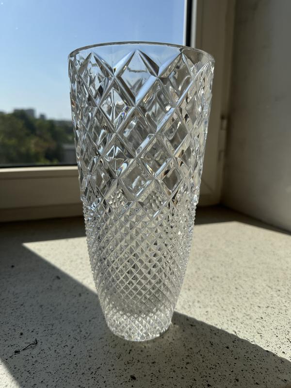 Дуже якісна та гарна кришталева ваза. Вінтажна але в ідеальному стані. Ця вазочка мені перейшла у спадок від бабусі) Висота 26 см. Дуже гарно буде дивитись з квітами, аби цукерками)