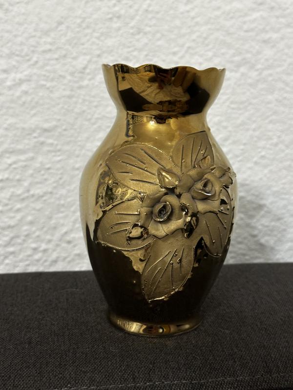 Ваза під золото декорована квітами. Стильний декор. Розміри: - Висота 17,5 см. - ширина 11 см. Ваза в ідеальному стані.