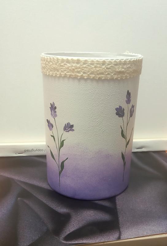 ваза для цветов,стекло,акриловая роспись,лак,лента.. диаметр 12 см высота: 18 см