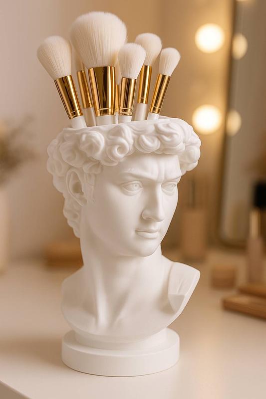 Бюст-подставка-ваза «Цар Давид», підходить гарно для пензиликів і інших косметичних речей. Зроблена нами з високоякісного пластику, є можливість на ній нанести Ваше ім’я або бренд. Розмір: висота - 19 см, ширина - 14 см.