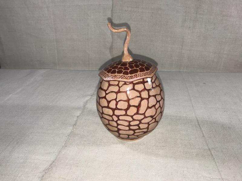 Тыква полностью натуральная. Внутренняя поверхность изделия оставлена неокрашенной, в натуральном цвете. Все неровности, хвостики на крышке - ′родные′. Поверхность окрашена и расписана красками, покрыта лаком. Замечательный, оригинальный подарок. Полностью ручная работа. 18 х 6 см