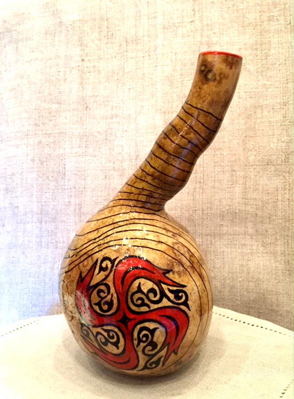 Копилка изготовлена из засушенной тыквы, поверхность покрыта лаком и расписана. Копилку тыкву можно использовать для интерьера и декора. Размеры: 30 х 13 см, диаметр горла-3,5 см; диаметр дна-7 см