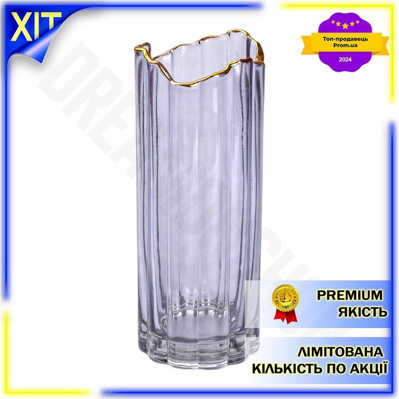 Dm ваза для цветов спецификация 2.2 серая с золотой окантовкой 30 см декоративная для инте...