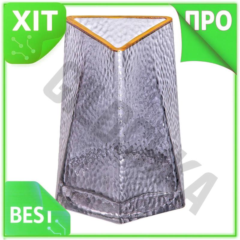 Ve стеклянная ваза для цветов new version треугольная 15,5 см серая с золотой декоративной...