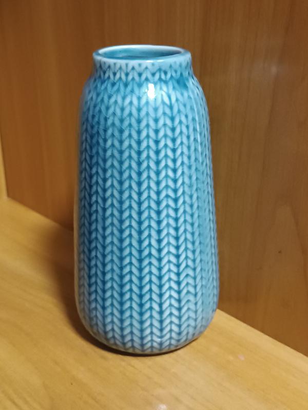 💙 Ваза из Англии — фактурная, стильная, уникальная Импортированная декоративная ваза из Англии — настоящий акцент для вашего интерьера. Глянцевая керамика с узором «вязанные косы» в оттенках синего создает эффект ручного плетения. Визуально напоминает текстиль, но с глубоким блеском глазури - выглядит дорого и дизайнерски. - Высота: 17 см - Диаметр: ~8,5 см - Материал: керамика, глянцевая глазурь - Происхождение: привезено из Англии - Стан: идеальный, без дефектов - Маркировка: произведена в Китае для датского бренда (имеется этикетка) 🪴 Подойдет для сухоцветов, декоративных веток или как самостоятельный арт-объект. Идеальна для скандинавского, минималистичного или эклектичного стиля. -