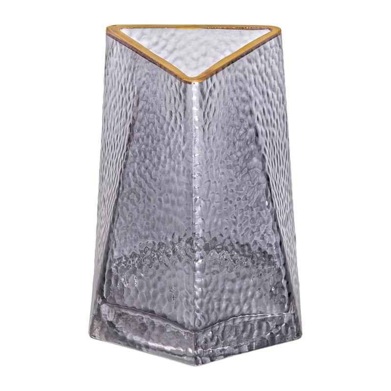 Стеклянная ваза для цветов, декоративная, треугольная, 15,5 см, серая с золотой окантовкой...