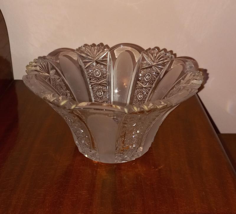 Чудова кришталева ваза з вишуканим різьбленим візерунком. Висота 10 см, діаметр 18 см, діаметр дна 8 см. Стан ідеальний, практично нова, стояла в шафі, нею не користувались.