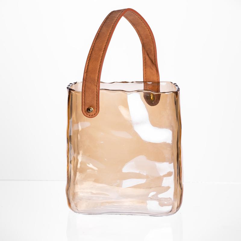 Стеклянная ваза сумочка с ручкой 16×8×18.5 (см) декоративная ваза для цветов 2 (л) коричне...
