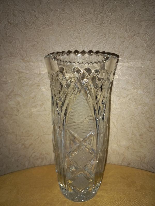 Кришталева ваза. Страна изготовления: Чехосфера. Дата изготовления: 70 лет прошлого столетия. В идеальном состоянии без дефектов и сколов. Висота: 23 см. Ширина шийки: 11,5 см. Пересылка по Украине, Новой Поште или Укр-почте.