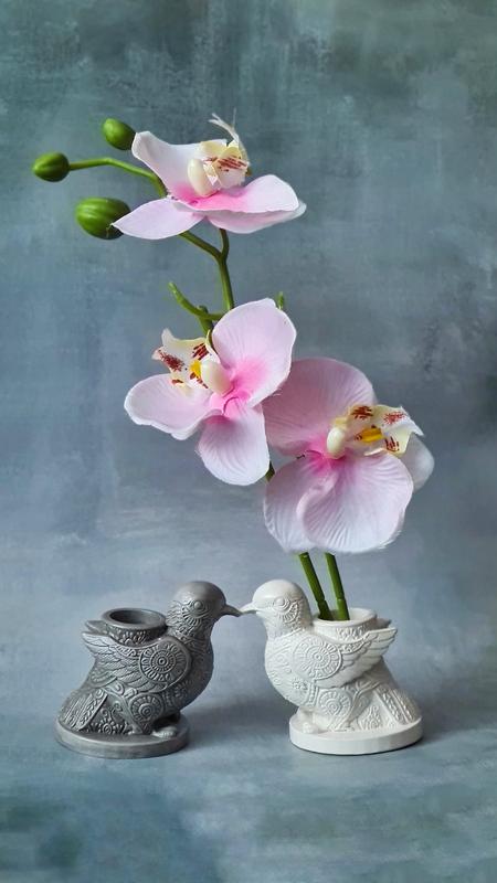 Ваза (Подсвечник) Птичка Бывают вещи, которые хочется не просто поставить на полку, а рассматривать кончиками пальцев. Наша пташечка - именно такая. Благодаря уникальной резьбовой поверхности, каждое прикосновение к ней ощущается особенным, а игра света и тени на узорах создает настоящую магию. Птичка подстраивается под ваши желания. Сегодня это изящная ваза для сухоцветов, а завтра - уютный подсвечник, дарящий мягкое сияние. Совместите ее с соевыми свечами, и ваш вечер превратится в сеанс восстановления и гармонии. 🎁 делаем подарочную упаковку для заказов от 200 грн 🫶 изготавливаем вручную с любовью, вдохновением и щепоткой магии, которую мы очень хотим передать вам. ⚪️ используем высокопрочный гипс, который дополнительно укрываем защитным лаком 🌟 по вашим пожеланиям можем собрать индивидуальный подарочный бокс Высота - 7.9 см Ширина - 8.4 см Диаметр отверстия - 2.1 см