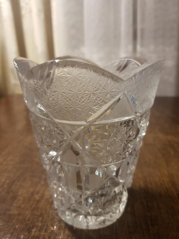 невеличка кришталева ваза, висота 13 см. діаметр 10 див. вгорі