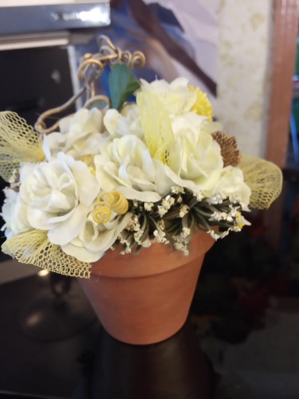 Симпатичная вазочка в горшочке керамическом с декором цветов.