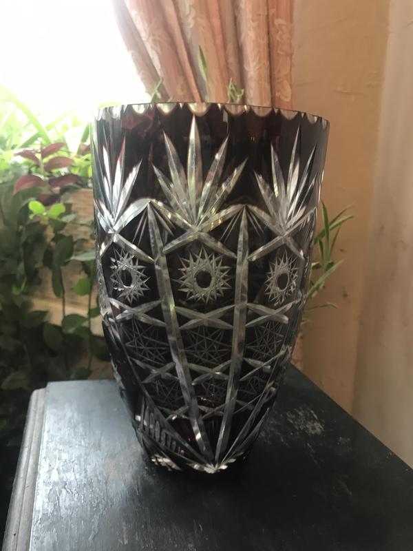 Шикарная немецкая ваза из бабушкиного буфета. Цветной двухслойный хрусталь. Ваза очень красива.Для большого букета. Есть пару мелких скольчиков по верхней кромке, что никак не уменьшает красоты изделия.