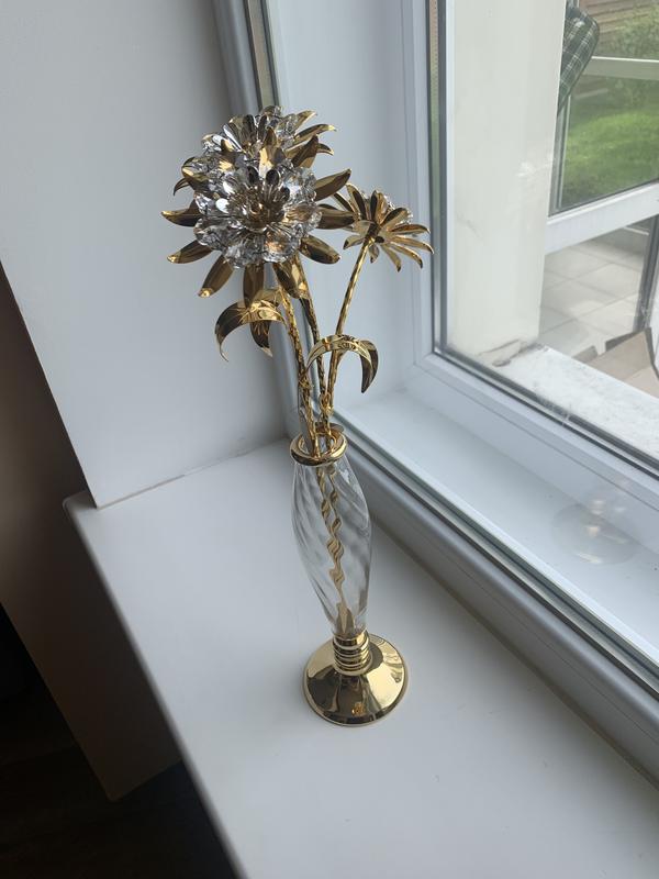 Продам неподошедший подарок, который не вписывается в мой интерьер. Абсолютно новая ваза, три стебелька с цветами, украшенные австрийскими кристаллами. Все покрыто золотом 24 карата, лежит уже много лет - не темнеет! В соответствующем интерьере будет смотреться очень утонченно, гармонично и привлекать внимание. Пересылаю НП или Джастин по предоплате.