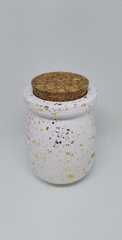 Материал :гипс. Размер : в 8.6*ш6.8 см. Объем 85 мл. Полость до самого дна. Крышечка отдельно 15 грн. Цена указана без крышечки. Цвет: золото на белом.