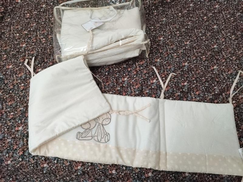 набор из колдрочки, простыни (микрофибра) и бортиков мягких стенок набор новый. цвет беж. подходит и для девочек и для мальчиков.Простынь можно использовать в коляску