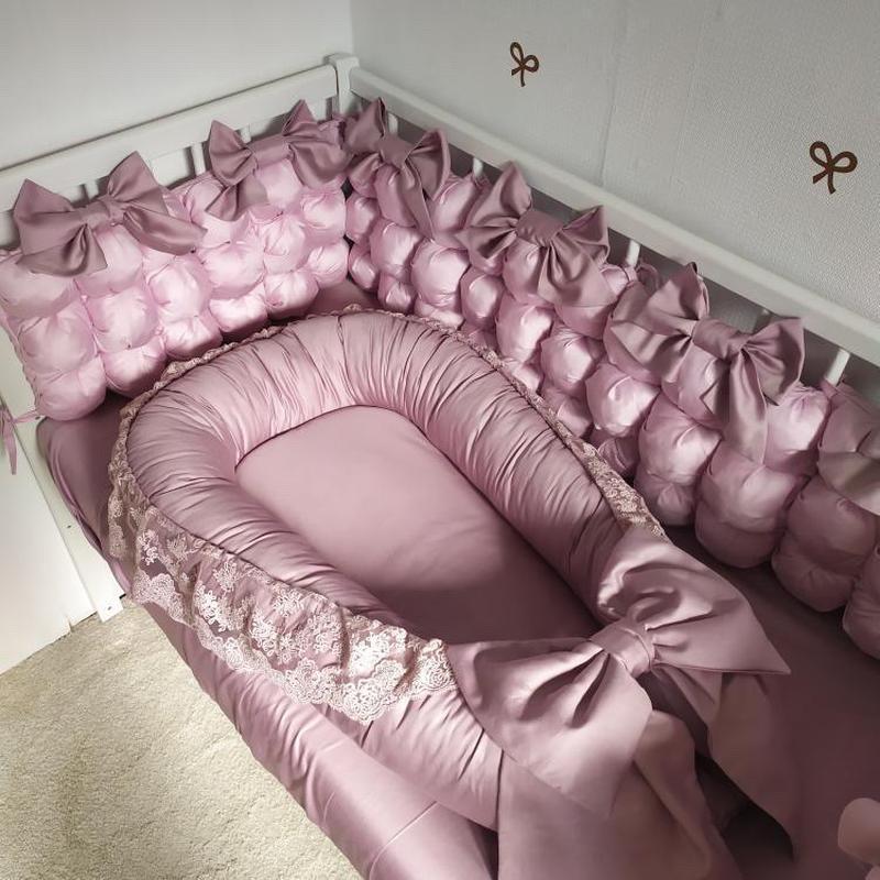 Набір у ліжечко для дівчинки: бортики, кокон, простирадло, подушечка