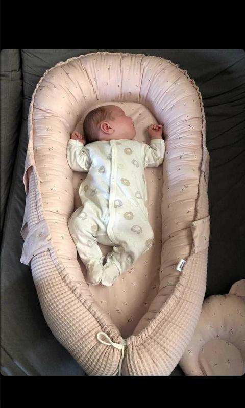 Кокон для девочки. Ткань -100% хлопок, матрасик из холофайбера съёмным для удобства стирки. В комплекте идёт и подушечка. Состояние идеальное использовали несколько раз.