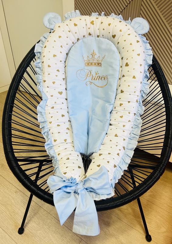 Дуже ніжний, гарний кокон з вушками в сердечку. Ручна робота на замовлення. Йде з додатковим матрасиком з вишивкою та написом Prince. В ідеальному стані