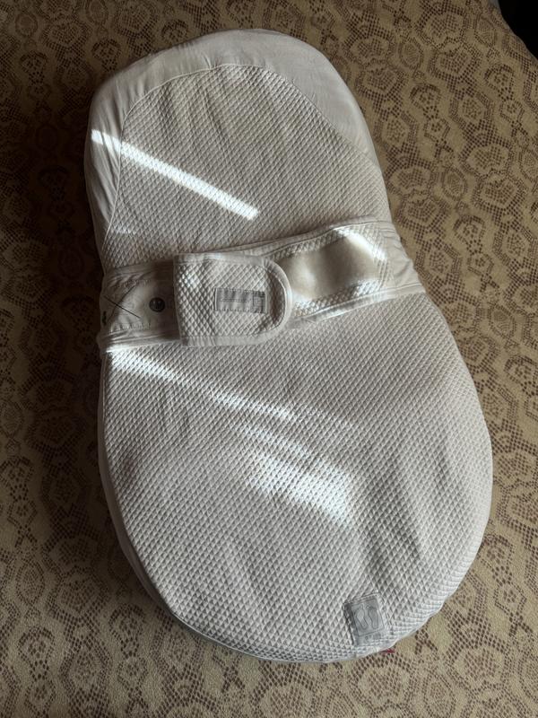 Кокон в гарному стані, дитина дуже любила в ньому лежати, і для батьків це паличка виручалочка. Користувались до 3 місяців. Є невеличкий нюанс, через це ціна нижча. Дірочку видно на фото. В подарунок покладу непромокаєму пеленку на резинці, яка ідеально підходить до кокона, і завжди кокон використався з нею.