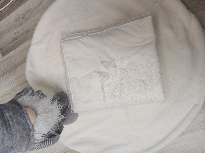 Новое детское одеяло украшено кружевом.