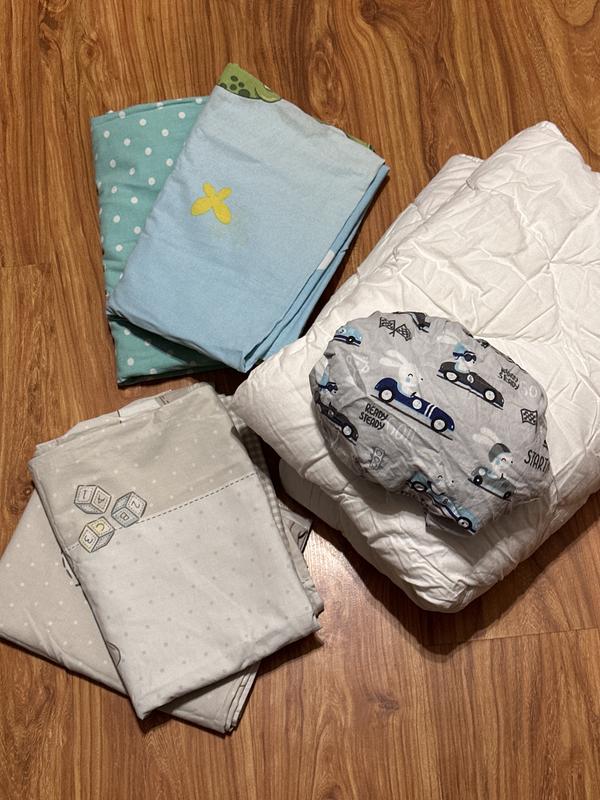 Ковдра 100х135, є 4 підодіяльники і наматрасник на дитяче ліжко, всі речі чисті і в гарному стані, без жодних дефектів