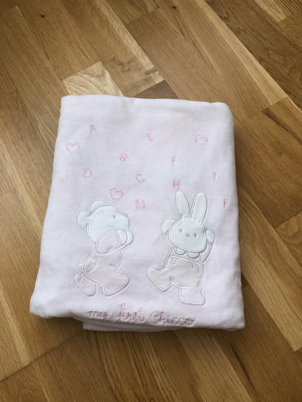 Нежно розовое велюровое одеяло Chicco . Вторая сторона трикотажная .