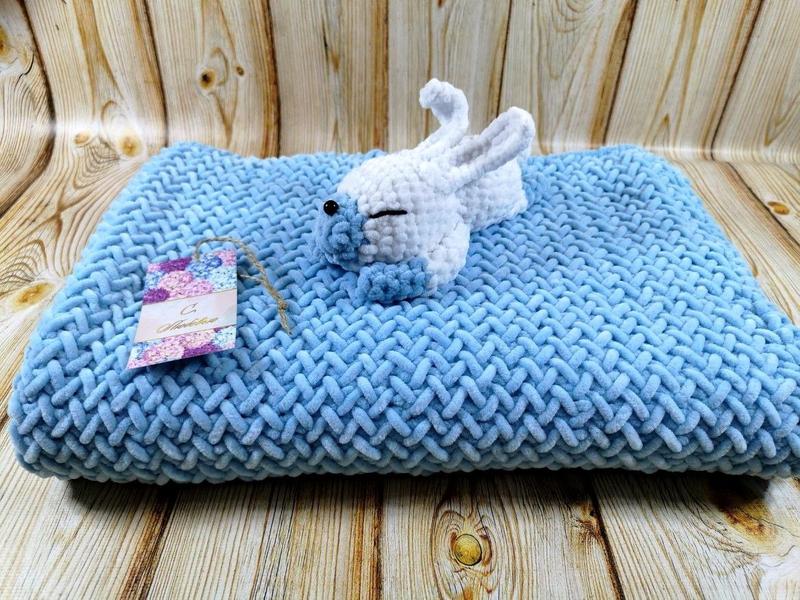 Уютный детский пледик для новорождённых 💙 Игрушка в подарок🤍 Могу связать такой же но для девочки🤗