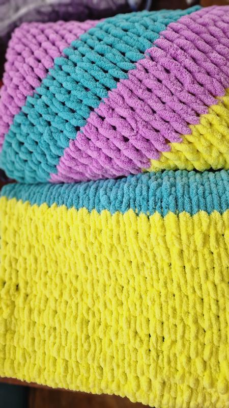 Пледики ручної роботи, м'які, не линяють, не садятся при пранні, дуже теплі , дітки будуть в захваті , розмір 1м на 1м20