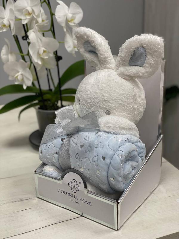 Плед з іграшкою зайчик Розмір пледа: 140 см х 110 см Матеріал: мікрофібра, бавовна 🍃 ціна: 650 грн.