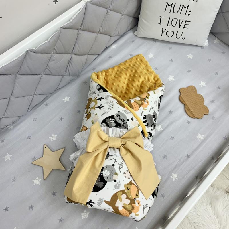 Плед конверт детский с одеялом, поплин и плюш, размер 80х100 см, зверушки с малышами топ