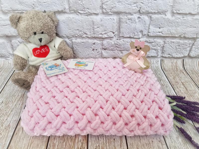 Детский плед \ вязанный плюшевый плед ручной работы персиковый