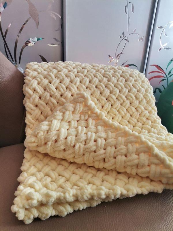 Вязанный детский плюшевый плед ручной работы